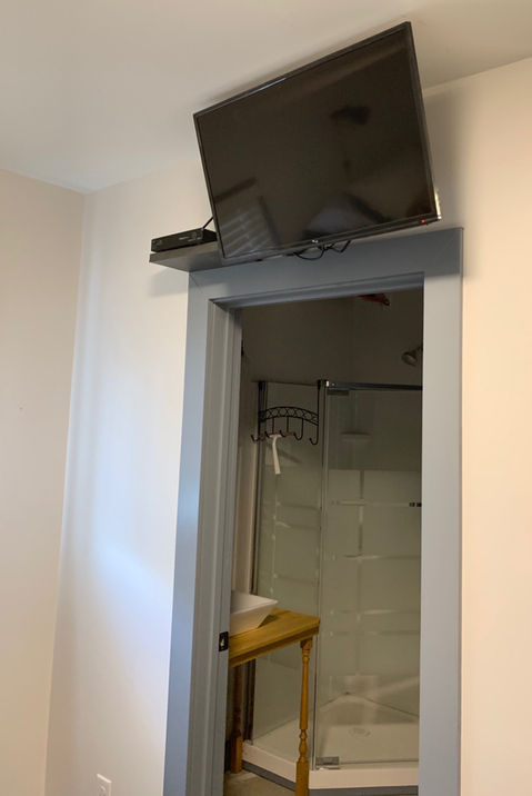 At The Ranch Highway 55 Debden Rooms to Rent, we provide our guests with a unique and comfortable lodging experience. Our modern suites feature pillow top mattresses, satelite TV, private bathrooms with showers, twin over double bunk beds with comfy mattresses, and kitchenettes. This is NOT a rustic bunkhouse, our fully private self contained modern suites give you all of the amenities you need for a truly enjoyable stay. Cozy warm in the cooler months with in-floor heating and in the warmer months open the screened windows to let the fresh breezes in. One suite is wheelchair accessible, the bathroom is ADA compliant and includes a barrier free shower There is a BBQ out the back door of the building that is available for everyone to use.